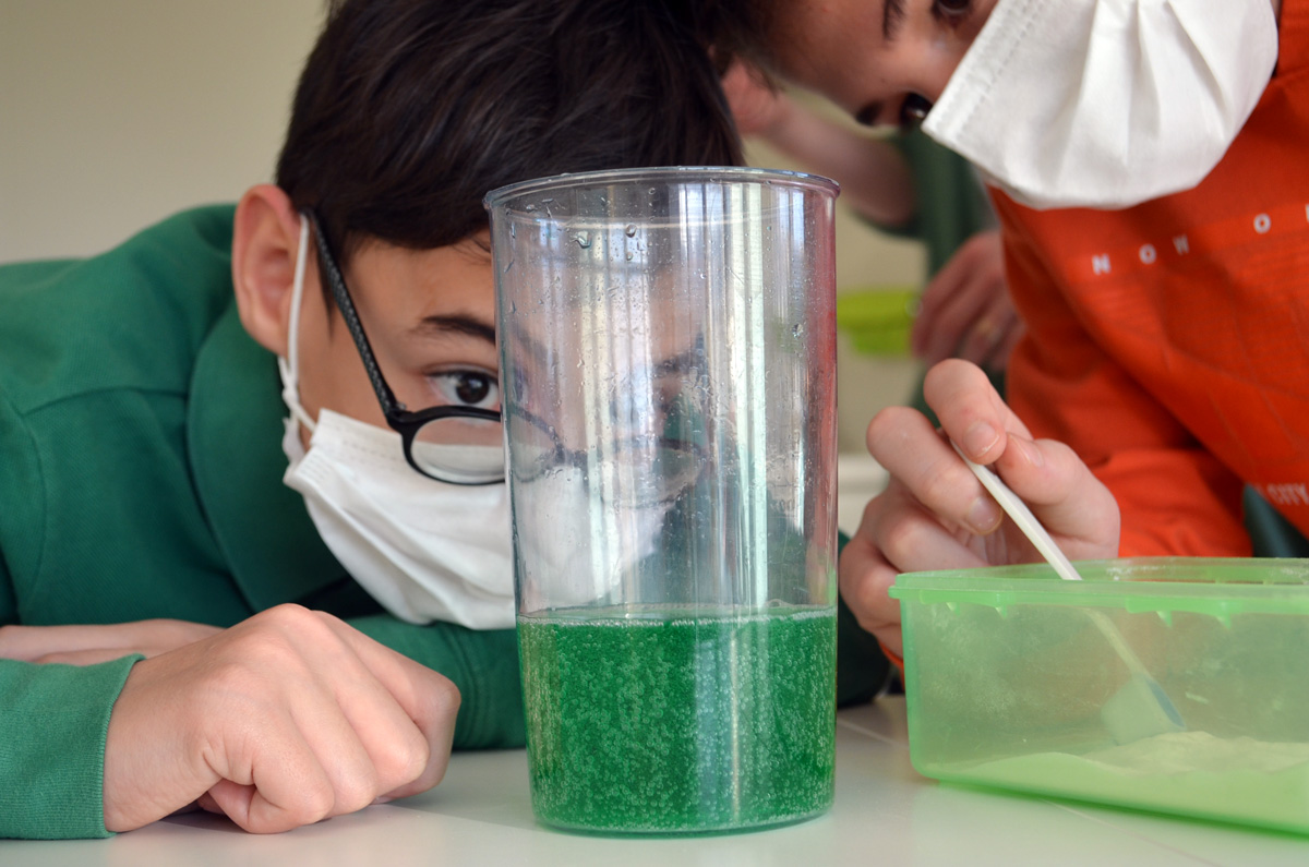 Çocuklar, kitaplardan, oyunlardan ve duyduklarından öğrendiklerini, deneyler ile pekiştirme imkanı buluyor.